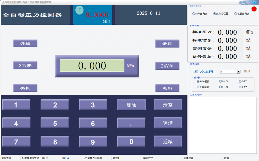 產(chǎn)品依托內(nèi)置高精度傳感器實(shí)現(xiàn)閉環(huán) PID 控制,確保壓力調(diào)節(jié)的精準(zhǔn)性與穩(wěn)定性。同時(shí)支持外接高精度傳感器作為壓力控制基準(zhǔn),可靈活適配各類專業(yè)氣體壓力傳感器,進(jìn)一步校準(zhǔn)壓力數(shù)據(jù),滿足不同應(yīng)用場景對高精度壓力控制的嚴(yán)格要求。